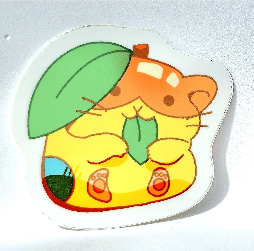 Freshly picked, chubby hamster mango stickers! Printed on durable matte vinyl!